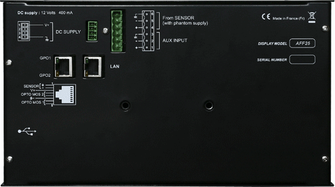 L’AFF25-3 est un afficheur enregistreur de pression acoustique permettant une visualisation simple et efficace des niveaux de pression acoustique ambiants (bars, discothèques, salles de spectacles, salles des fêtes).