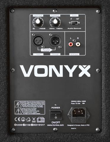 Un subwoofer avec filtre passe-bas réglable entre 30 Hz et 120 Hz. Avec amplificateur 1000 W, sélecteur de phase pour que le sub soit en phase acoustique avec les enceintes principales, branchements IN/THRU pour chaînage signal ligne.