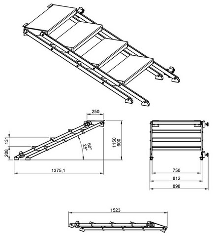 PLT-st60100 Escalier réglable de 0,6 m à 1 m 4 marches