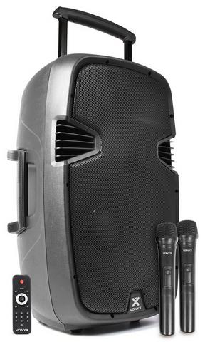 Un système professionnel 12“ 500 W avec 2 microphones UHF pouvant fonctionner sur des fréquences différentes, télécommande et ports USB et SD pour lire des fichiers audio MP3. Ce système tout en un fonctionne sur secteur ou sur accu 12 V intégré. Sur la face arrière, 2 entrées micro et effet Echo pour les micros filaires, entrée AUX Ligne, zone de commande MP3, 5 réglages graves et aigus... Grâce à ce système excitant, on peut sonoriser avec une musique agréable tout type de lieux. Avec poignées intégrés. Durée de vie de la batterie : ne pas laisser l'enceinte connectée au secteur plus de 12 heures / jour.