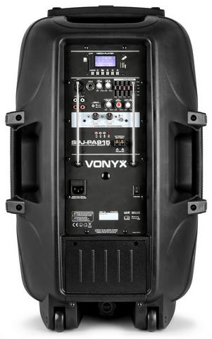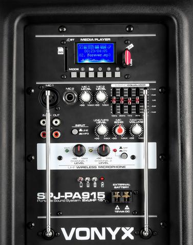 Un système professionnel 15“ 700 W avec 2 microphones UHF pouvant fonctionner sur des fréquences différentes, télécommande et ports USB et SD pour lire des fichiers audio MP3. Ce système tout en un fonctionne sur secteur ou sur accu 12 V intégré. Sur la face arrière, 2 entrées micro et effet Echo pour les micros filaires, entrée AUX Ligne, zone de commande MP3, 5 réglages graves et aigus... Grâce à ce système excitant, on peut sonoriser avec une musique agréable tout type de lieux. Avec poignées intégrés. Durée de vie de la batterie : ne pas laisser l'enceinte connectée au secteur plus de 12 heures / jour.