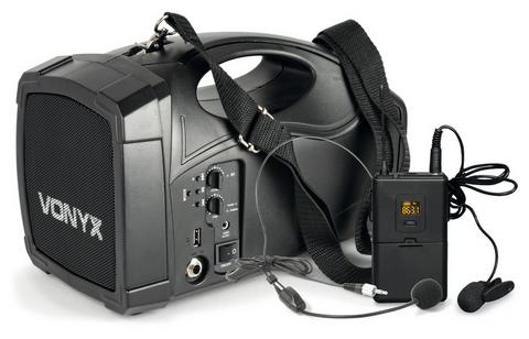 Amplificateur léger et compact avec microphone sans fil. Peut être utilisé via l'alimentation secteur ou l'accumulateur intégré rechargeable. Il peut être posé sur une surface plane, porté en bandoulière et à la main grâce à son faible poids. Convient pour des utilisations en intérieur et extérieur, par exemple cours, conférences, activités promotionnelles, visites... partout où vous avez besoin d'augmenter votre voix.
