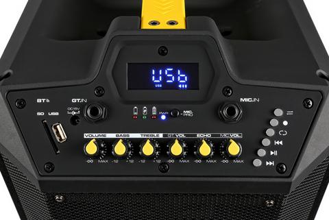 Le VPS10 est un système de sono portable complet avec toutes les fonctions modernes : lecteur média avec des possibilités infinies de connexions. Ports USB et SD intégrés, récepteur pour brancher votre Smartphone via BT, entrées AUX pour brancher tout autre lecteur, sans oublier une entrée pour votre guitare. Tout ceci, combiné au microphone main UHF livré, fait de ce système, un ensemble parfait pour de petites prestations où vous devez, en plus de la musique, vous adresser au public.