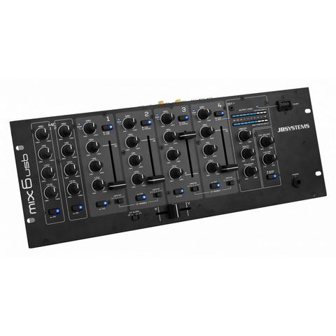 MIX6usb JBSYSYEMS Un mélangeur 19" compact et robuste au design stylé noir (LED blanches et bleues).