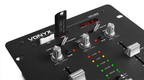 Le VDJ25 est un mixeur polyvalent avec port USB/SD permettant de connecter directement une clé USB ou une carte SD avec fichiers MP3 au lecteur MP3. Le mixeur est équipé d'un amplificateur de 2 x 50 W afin que l'utilisateur dispose d'une unité complète comme base pour cette installation. Le VDJ25 est équipé d'un récepteur BT qui vous permet de diffuser de la musique directement depuis votre smartphone ou tout autre appareil compatible BT. Il dispose d'entrées ligne/phono commutables et de sorties Master et moniteur. Le canal du microphone est doté d'un réglage d'écho et de niveau. Avec crossfader et commutateurs téléphone et moniteur pour assigner le signal de sortie. Un mixeur attractif pour tous.