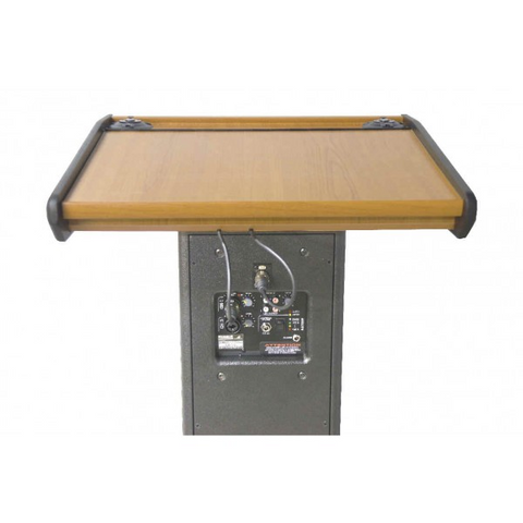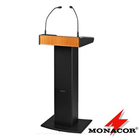Le pupitre actif SPEECH-104D de MONACOR allie parfaitement qualité sonore, puissance et confort. Fonctionnant sur batterie et donc indépendant de son emplacement, le SPEECH-104D fait de toute surface à sonoriser un auditorium. Il est parfait également dans tout environnement où la présence d'un pupitre peut être nécessaire de manière permanente ou non. La technologie de l'amplificateur et de l'enceinte permet non seulement une restitution des discours mais de rendre la musique et par exemple les doublages de films simples et de qualité. Branchez un microphone col de cygne et / ou reliez une source de signal : allumez, c'est prêt.